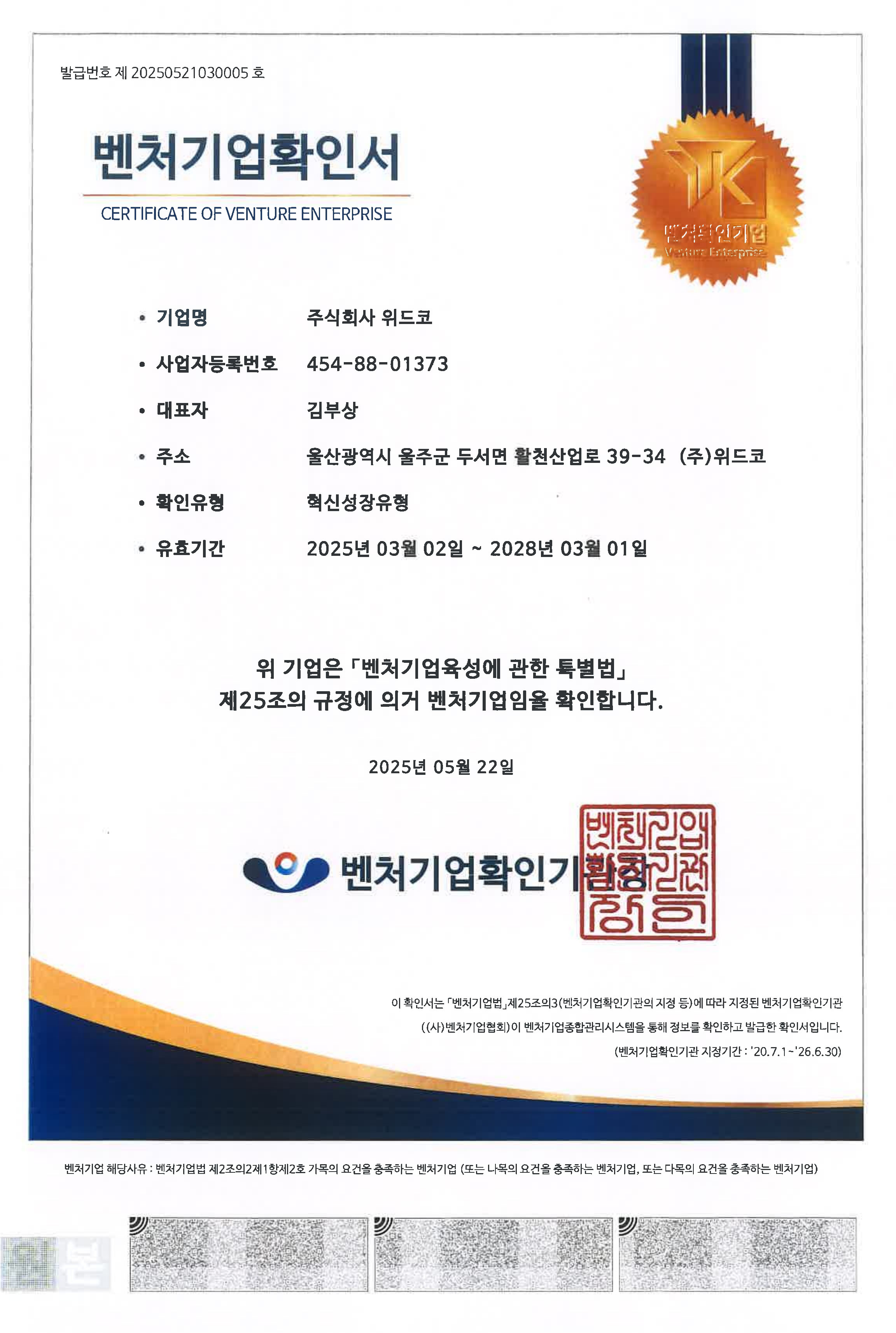 벤처기업확인서