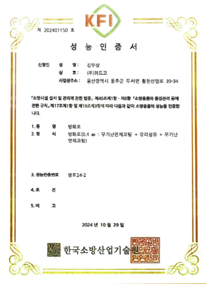 소방청 인증 용접방화포, 방위산업 군수품 제조