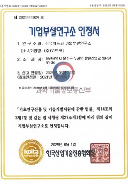 기업부설연구소 인정서